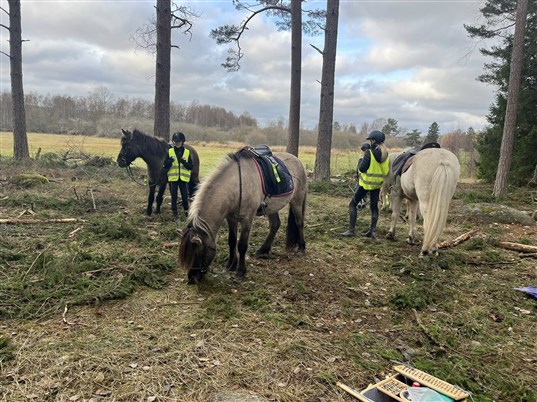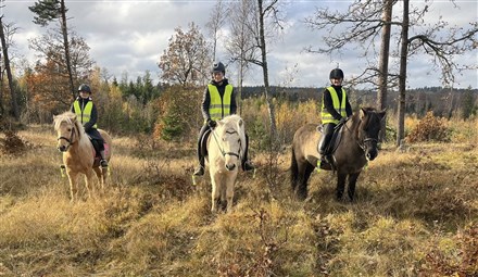 Vi använder alltid reflexvästar när vi rider ut, detta för att vi ska synas i trafiken.